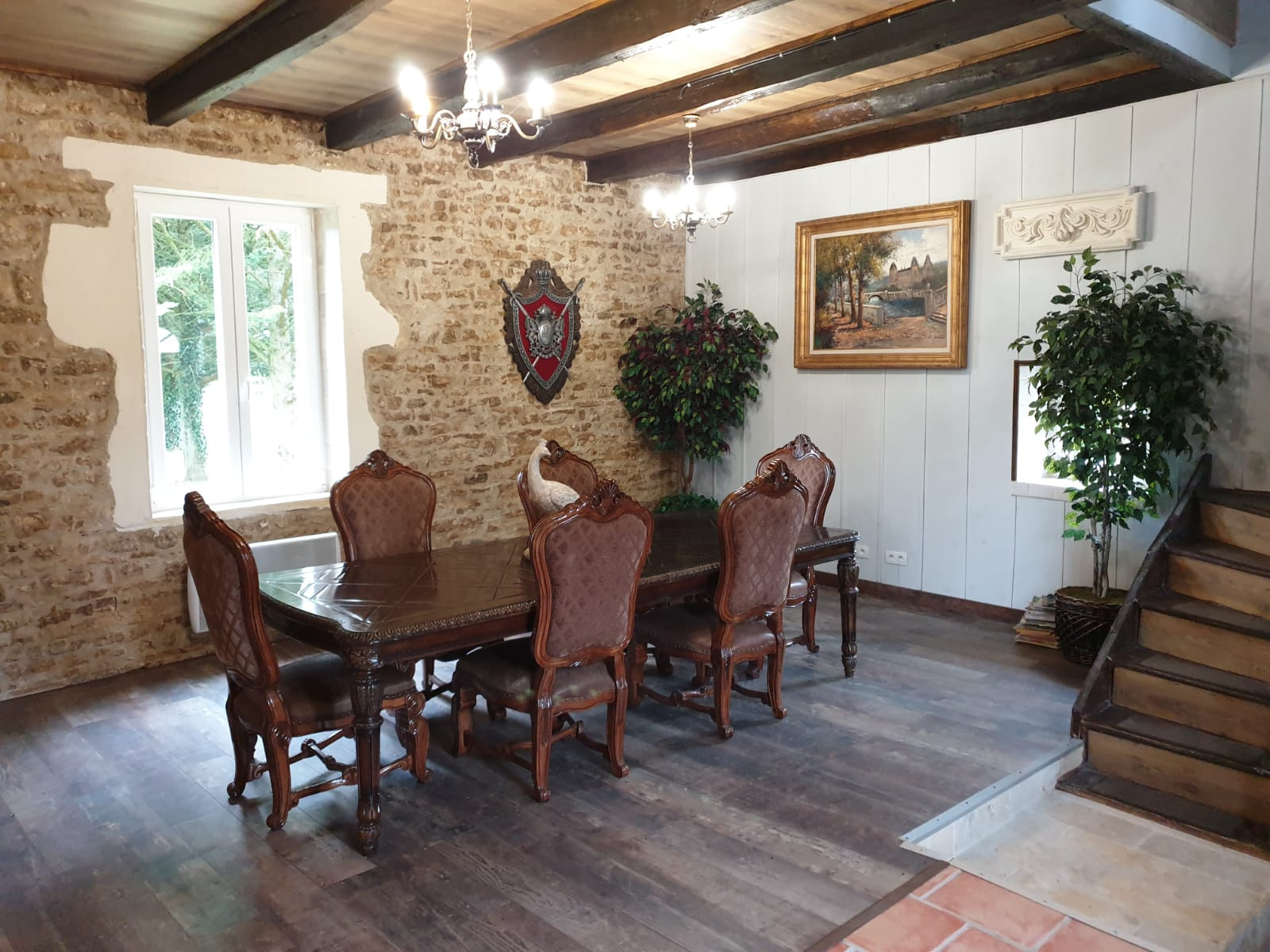 à propos de cebienAu rez-de-chaussée: Hall d'entrée, salle à manger, grande cuisine entièrement équipée, salon avec un escalier menant à une suite parentale avec dressing salle de bains et wc. Au 1er étage: Grand palier desservant 2 suites parentales avec dressing, salle d'eau et wc, buanderie Au 2ème étage: Un majestueuse suite parentale avec grand dressing, salle de bains et wc En annexe: Une maison de gardien avec grand séjour et cuisine ouverte, chambre, salle de bains et wc au 1er étage. Grande salle de réception d'environ 130 m2, divers toits, grange d'environ 200 m2