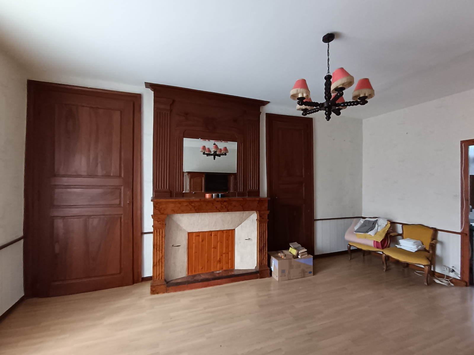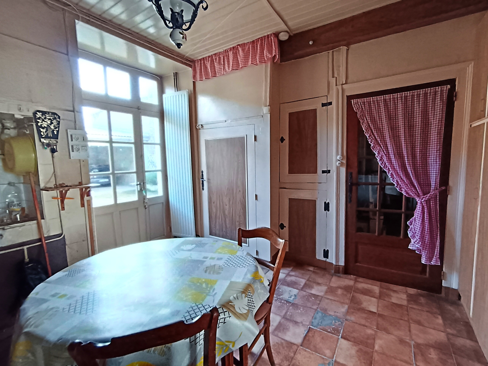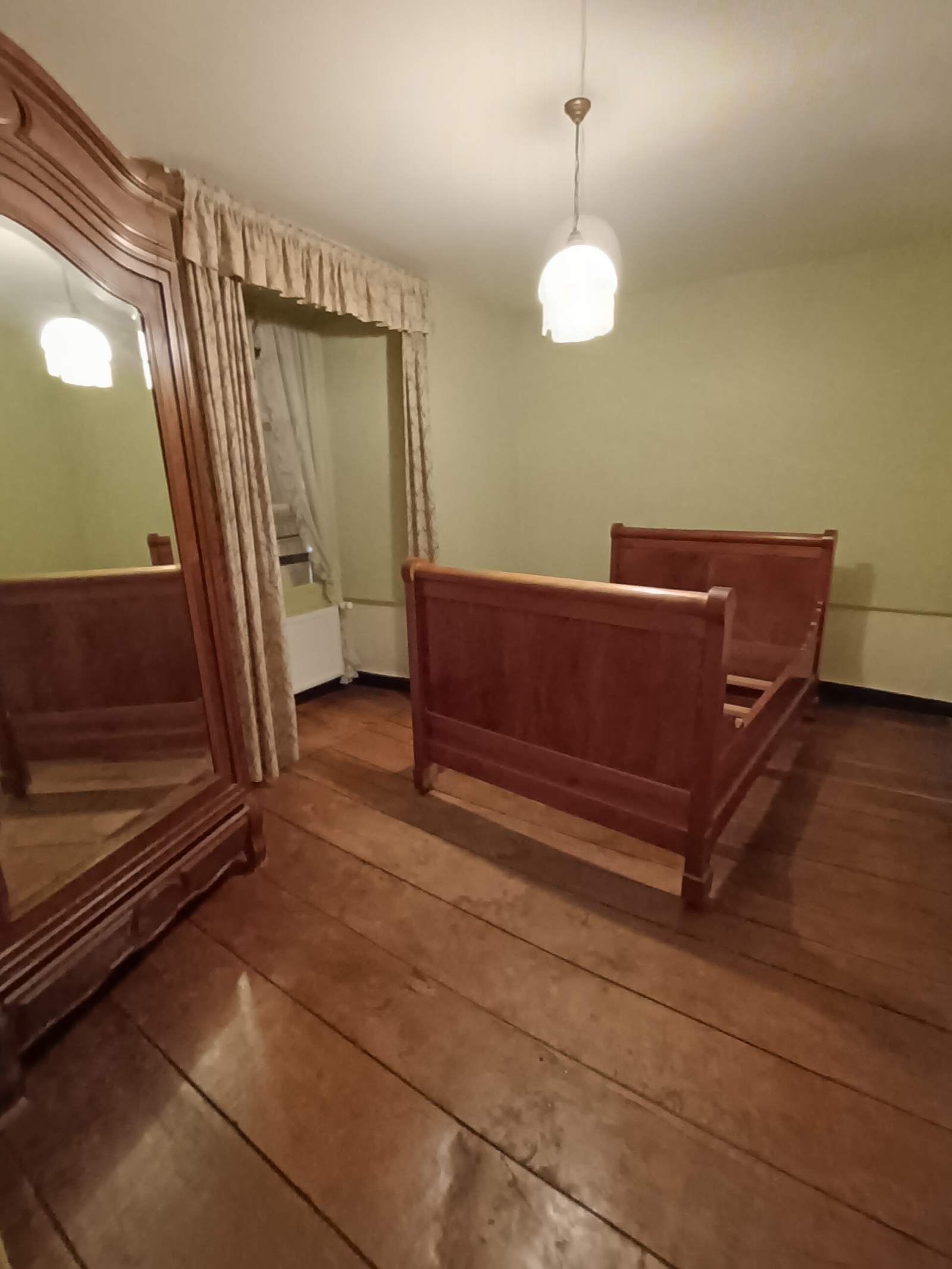 Au rez-de-chausséé : entrée, séjour, cuisine simple avec wc, arrière-cuisine, une pièce