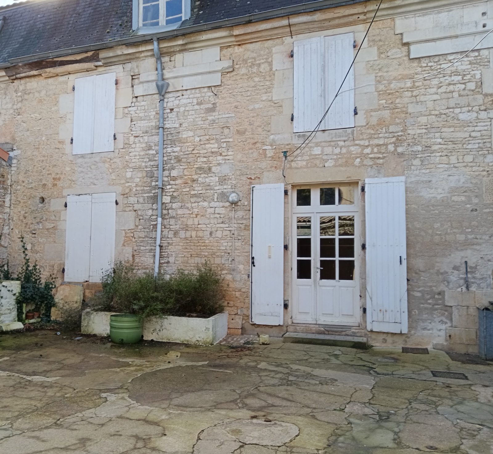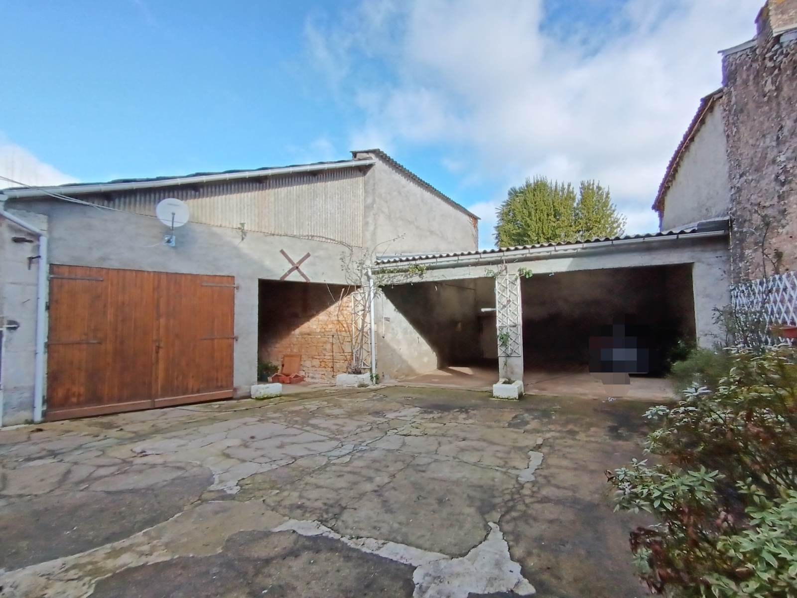 cour fermée sur l'arrière avec préau, chaufferie,garage avec grenier