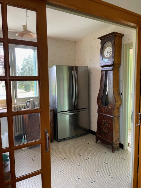 Entrée, cuisine simple, séjour avec cheminée, salle d'eau, wc, 3 chambres dont une avec placards, sous-sol complet avec chaufferie, garage et atelier.