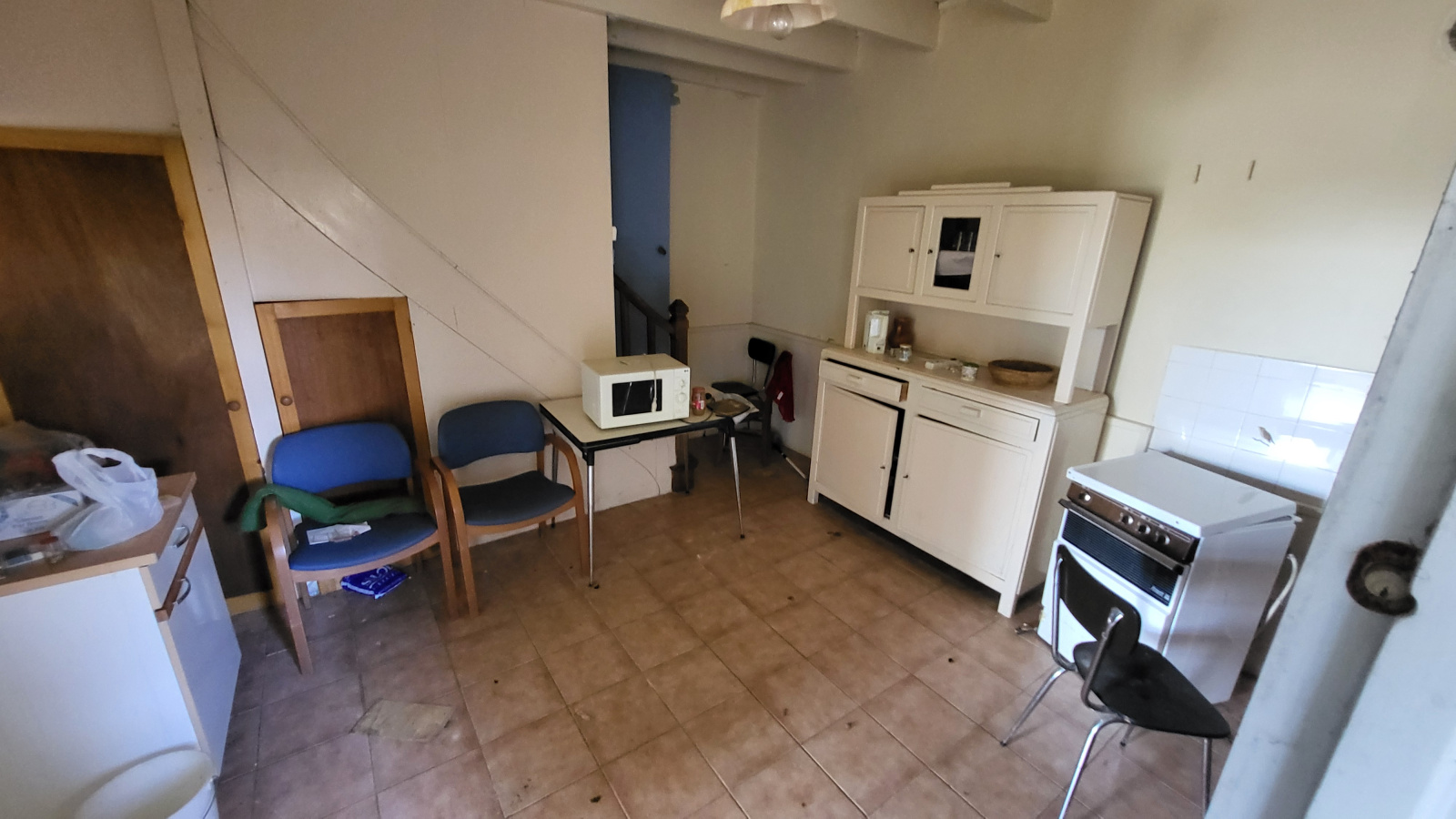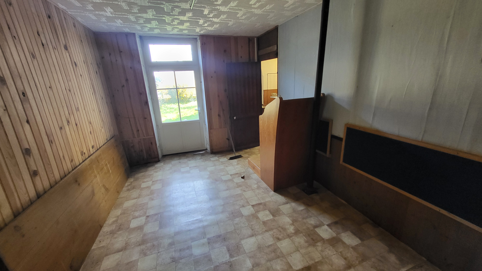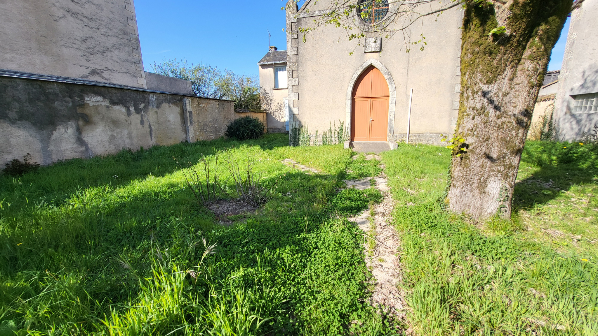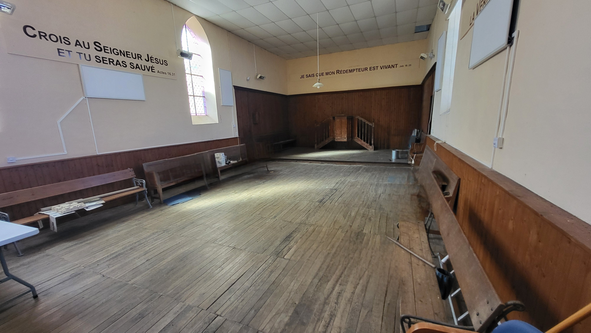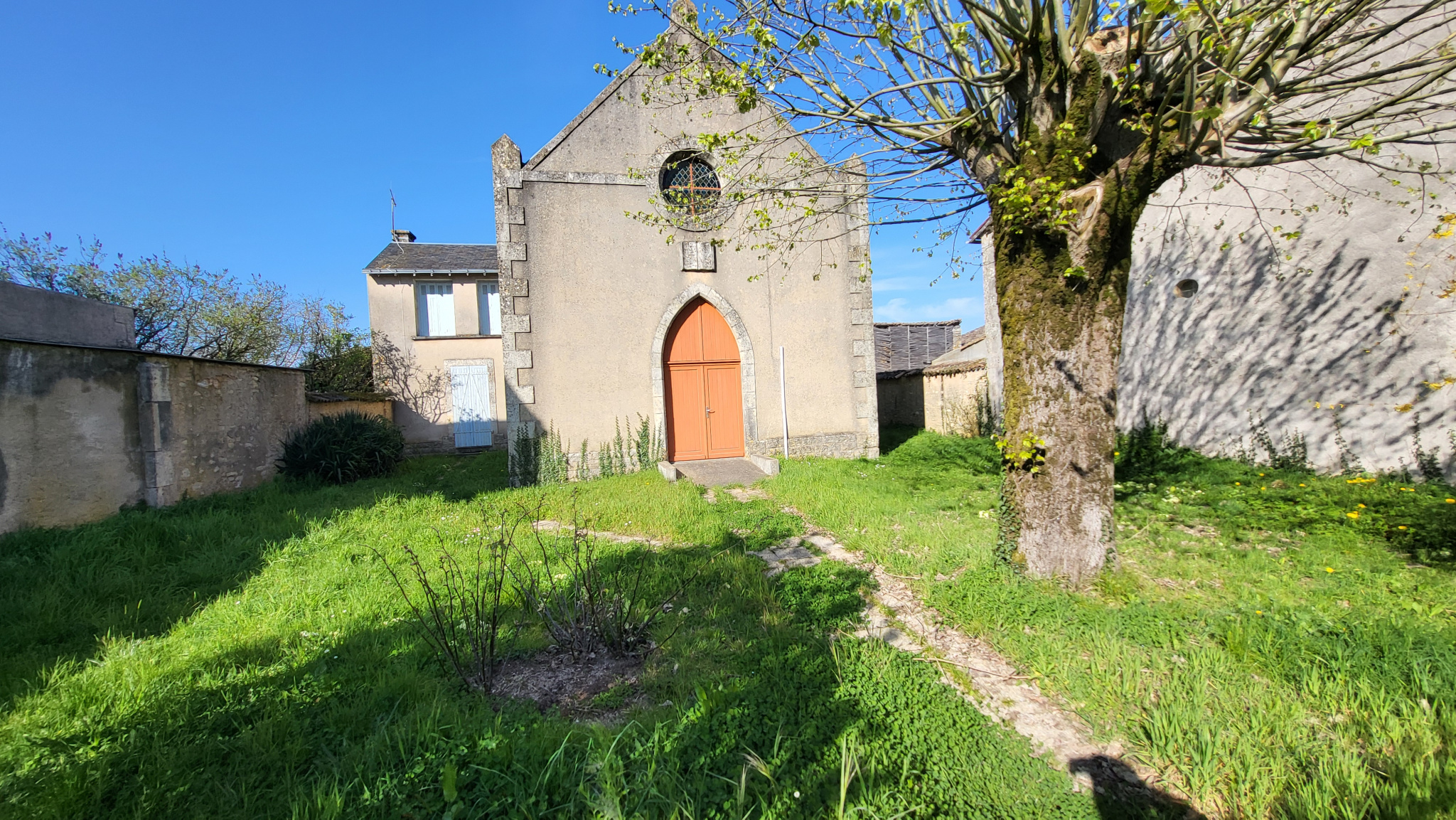 Ancien édifice religieux composé en grande partie de la salle principale, de gauche et de droite : petit transept faisant office de bureau, petit transept faisant office de logement Au rez de chaussée: une pièce avec cheminée, cuisine, wc A l'étage: palier desservant 3 chambres, salle d'eau avec wc